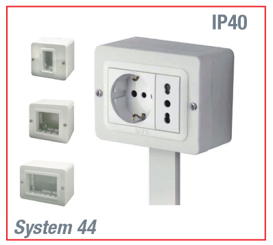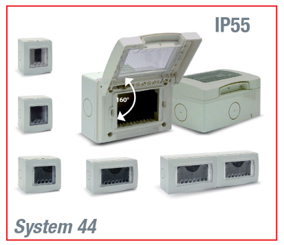 Wall-mounted boxes, enclosures and front plates with IP protection, SYSTEM 44 - brochure